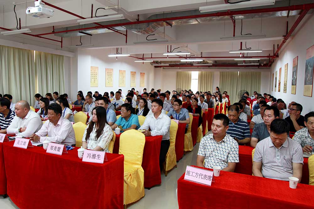 2015年10月27日,2015首屆(廣州)國際高端滋補品交易會動員大會隆重召開,大會旨在動員集團上下進一步提高認識,高標準做好籌備工作,在最后30天的沖刺階段,努力把本屆交易會辦成更高水平、更高層次和更具影響力的國際盛會。大壯集團副董事長鄭宏銳先生、常務副總經理梁耀明先生、副總經理藍澤敏先生、工程部總監趙寧輝先生、施工方代表及集團全體員工出席本次大會。