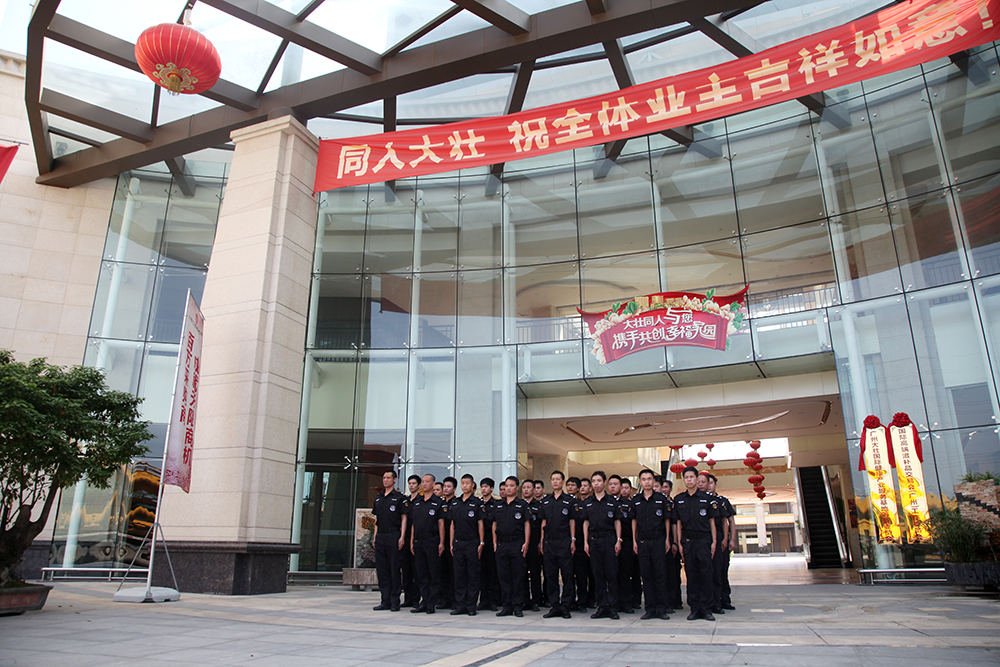 大壯國際廣場物業服務中心,以高、精、尖標準攜理品質生活,于生活細微之處,為您傾心呵護。早上你還在睡夢中時,清潔部已開始打掃衛生,為業主提供干凈舒適的生活環境和愉悅心情而辛勤勞動。您去上班了,保安部始終堅守在崗位上,查看進出小區的車輛,巡邏在樓棟之間;維修部隨時待命,處理業主家中緊急停水停電等故障。現在讓我們一起來目睹大壯國際廣場物業中心保安部的風采吧。