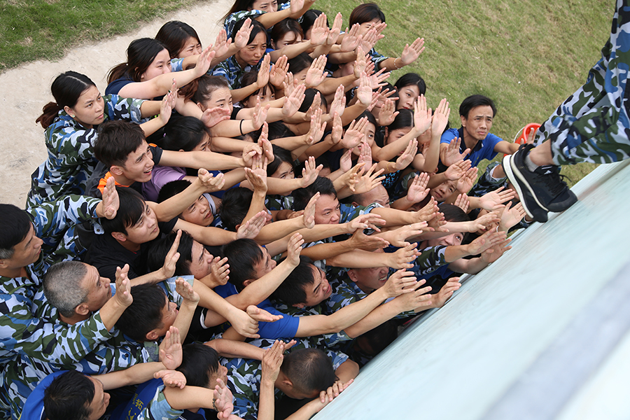 看似不可能的任務(wù)——4米多高畢業(yè)墻,大壯同人也成功翻越了,感謝利用自己優(yōu)勢甘愿做人梯的小伙伴,感謝打頭陣最先翻越畢業(yè)墻的小伙伴,實(shí)現(xiàn)“先翻越”帶動“后翻越”,他們對其他未翻越的小伙伴伸出援助、幫扶之手,還有下面緊緊托起的“救護(hù)”之手,為翻越的小伙伴做好安全措施,環(huán)環(huán)相扣,最終4米多高的畢業(yè)墻,瘦弱的女同志翻越了,較為年長的伙伴也翻越了,只要齊心協(xié)力,沒有什么不可能。畢業(yè)墻項(xiàng)目,不借助任何外力與工具,大壯同人54人,只用了5分37秒就成功翻越了。我們是最棒的!
