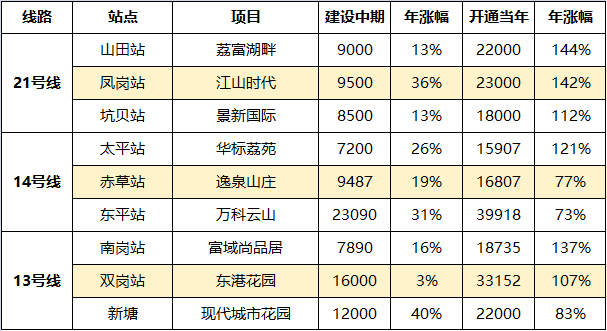 數(shù)據(jù)顯示,地鐵通車后,北京、上海、廣州地鐵周邊物業(yè)價值均得到大幅度的提升,具體為:離地鐵站0-500米的近郊區(qū)物業(yè)價值提升20%-25%,而遠郊區(qū)物業(yè)價值則提升10%-15%。