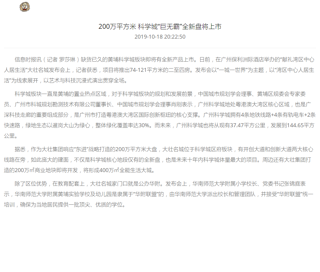 200萬平方米 科學城“巨無霸”全新盤將上市