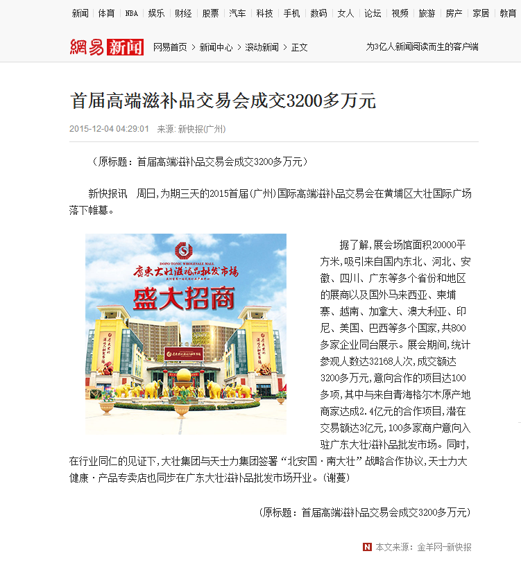 首屆(廣州)國際高端滋補品交易會成交3200多萬元_網易新聞中心