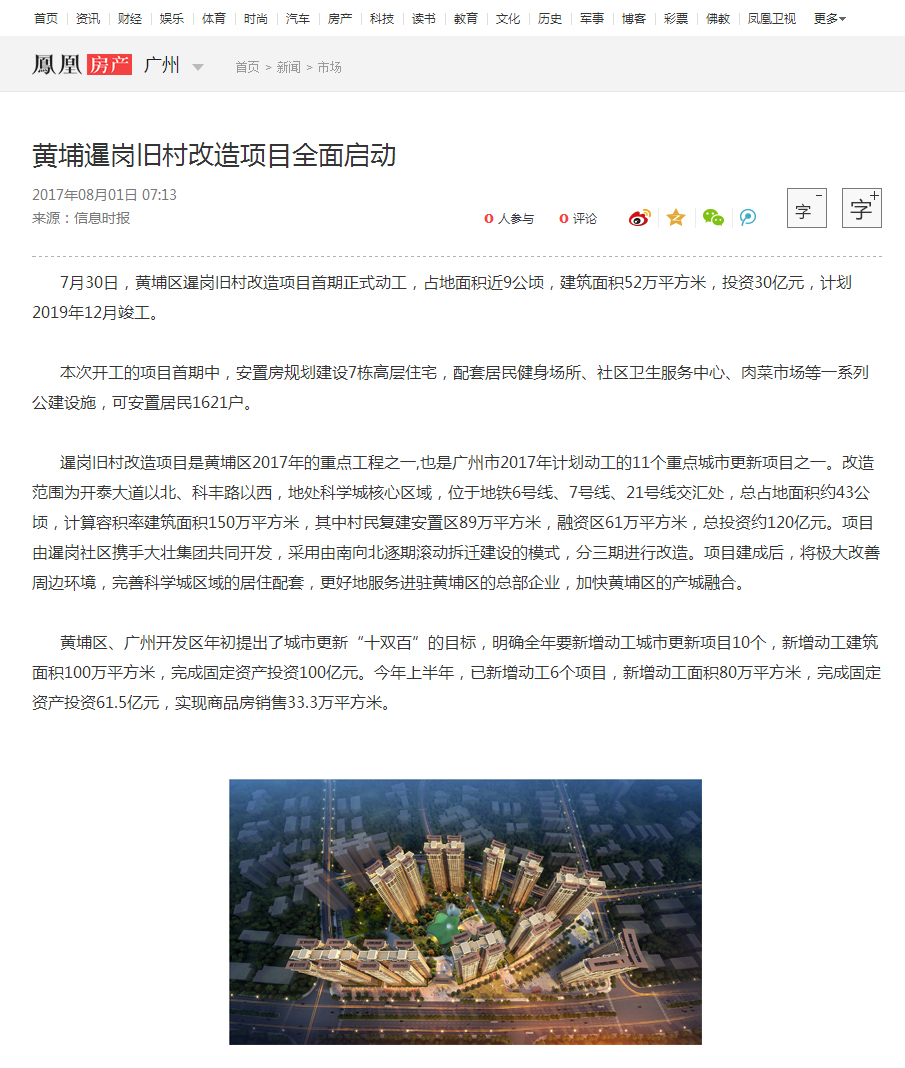 黃埔暹崗舊村改造項目全面啟動 ——鳳凰房產廣州