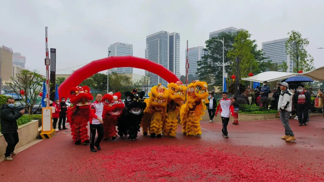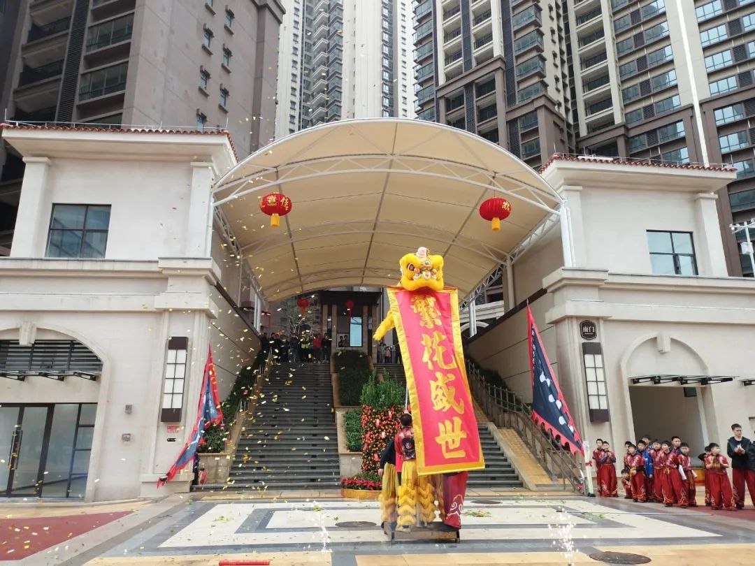 精彩舞獅,共慶交付,預祝美好生活正式啟幕。鑼鼓喧天,雄獅獻瑞,萬事順風又順水。現場鞭炮齊鳴,在一片鞭炮聲中,開啟了暹崗居民們的幸福生活。
