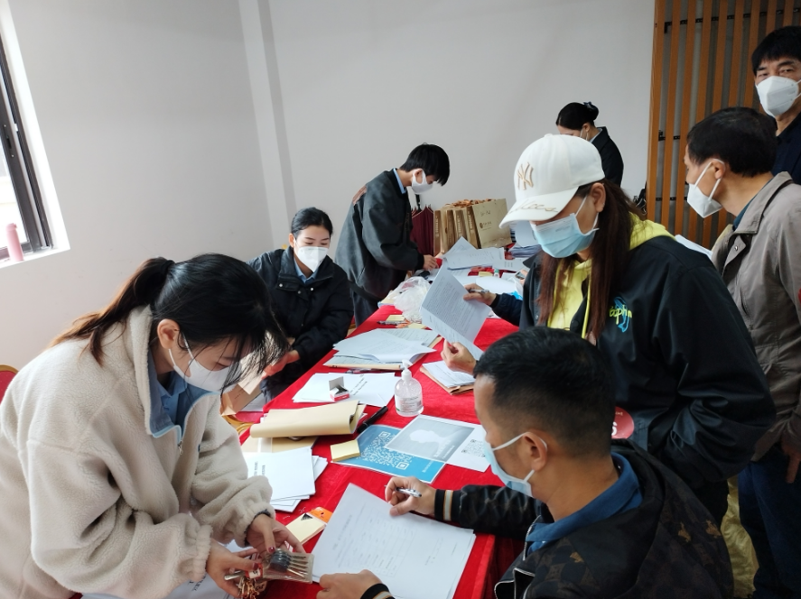 在工作人員的熱情服務下,暹崗居民們完成了交房相關流程辦理,一切井然有序,喜氣洋洋。