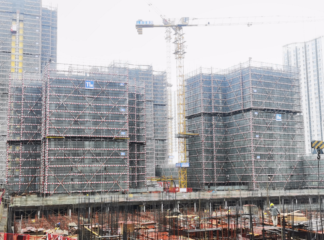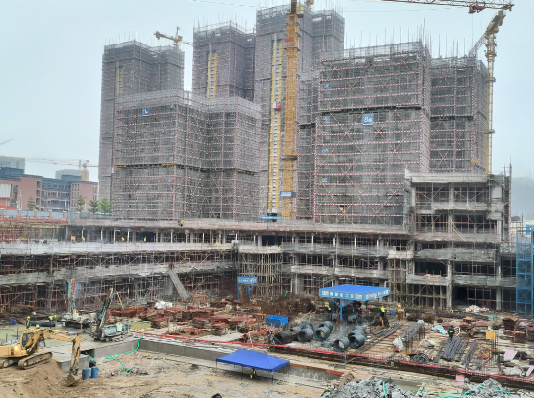 施工現場一片熱火朝天的景象,在保證工程質量和安全的前提下,穩步加速推進暹崗舊改復建區二期的工程建設。接下來將最新工程進度呈上,邀您共鑒理想生活藍圖。